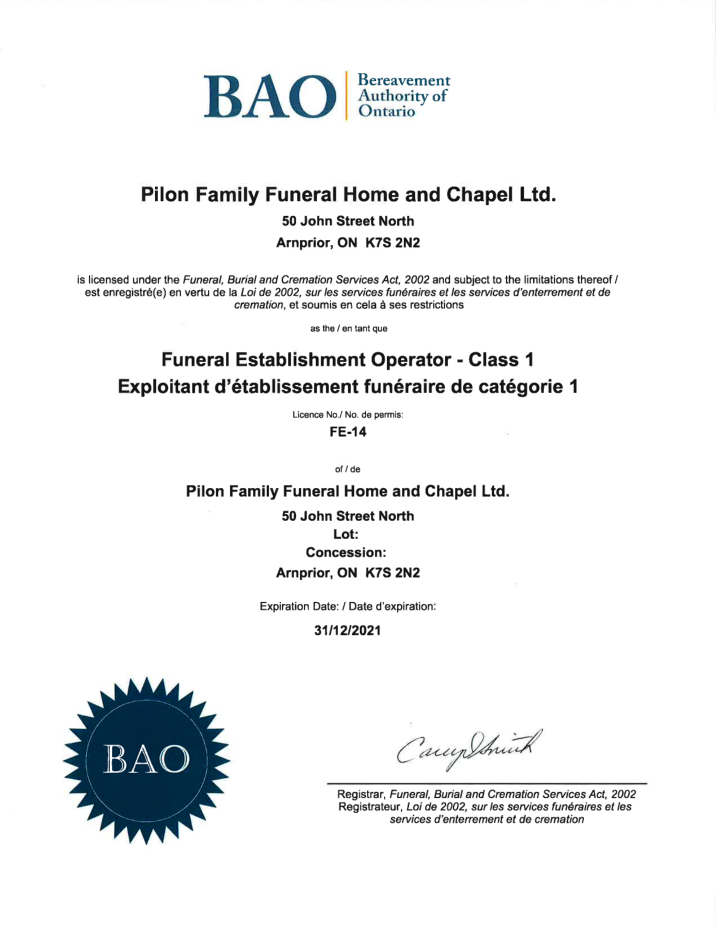 At the Pilon Family Funeral Home we want to help you understand what is known today as our Service Charges. To help you understand Funeral Costs we have prepared an outline of the categories that make up a funeral account.